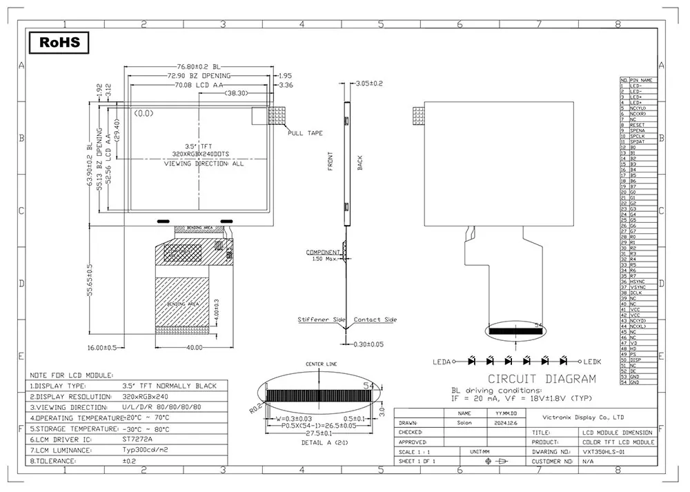 TFT LCD kristal likidoen pantaila mota da, film mehe transistore teknologia irudiaren kalitatea hobetzeko erabiltzen duena, eta eguneroko bizitzan aplikazio ugari ditu. Txinan TFT moduluen fabrikatzaile eta hornitzaile profesional gisa, zerk egiten du Victronix 320 hazbeteko 320 × 240 QVGA IPS TFT modulua beste fabrikatzaile batzuen desberdina? Lehenik eta behin, 300 CD / M²-ko distira tipikoa eskaintzen du, 80 ° zabaleko angeluak ikusten ditu norabide guztietan, eta 800: 1 kontraste-erlazioa, hainbat angeluetatik irakurgarritasun bikaina bermatuz. Bigarrenik, 6S-ko LED zuriak erabilitako argiztapen unitate bat integratzen du, 30.000 eta 50.000 orduko bizimodua (% 50eko distira), argiztapen baldintza guztietan ikusgarritasun argia bermatuz. Gainera, RGB 24 biteko interfazea onartzen du ST7272A kontroladorearekin. Horrez gain, ingurumeneko proba zorrotzak gainditzen ditu, shock termikoak (-30 ° C ↔ + 80 ° C ↔ + 80 ° C-k barne), hezetasun biltegia (60 ° C / 90% RH) eta bibrazio mekanikoa, tenperatura hedatuaren barrutian (-20 ° C eta 70 ° + 70 ° + 70 ° + 70 ºC) funtziona dezakeela ziurtatuz.
