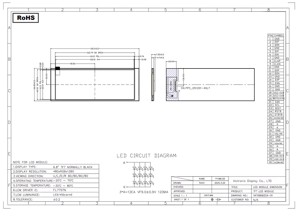 TFT LCD kristal likidoen pantaila mota da, film mehe transistore teknologia irudiaren kalitatea hobetzeko erabiltzen duena, eta eguneroko bizitzan aplikazio ugari ditu. Txinan TFT moduluen fabrikatzaile eta hornitzaile profesional gisa, zerk egiten du Victronix 6,86 hazbeteko 480 × 1280 IPS TFT modulua beste fabrikatzaile batzuengandik desberdina? Hasieran, 450cd / m², 16,7 metroko kolore tipikoa eskaintzen du, 80 ° -ko (tipikoa) 80 ° -ko angelu zabal bat eta 800: 1 arteko kontraste-erlazioa, hainbat angeluetatik irakurgarritasun bikaina bermatuz. Bigarrenik, 3 × 4 LED zuriak erabilitako argiztapen unitate bat integratzen du, 30.000 eta 50.000 orduko bizimodua (% 50eko distira), argiztapen baldintza guztietan ikusgarritasun argia bermatuz. Gainera, abiadura handiko datuen transferentzia eta integrazio sinplifikatua lortzeko 4-Lane MIPI DSI interfazea erabiltzen du. Horrez gain, ingurumeneko proba zorrotzak gainditzen ditu, tenperatura altuko / baxuko biltegiratze eta operazioa, tenperatura txirrindularitza, bero hezetasuna (hezetasuna) probatzea barne, tenperatura hedatuaren artean funtziona dezan, -20 ºC-tik + 70 ° C bitartekoa da.