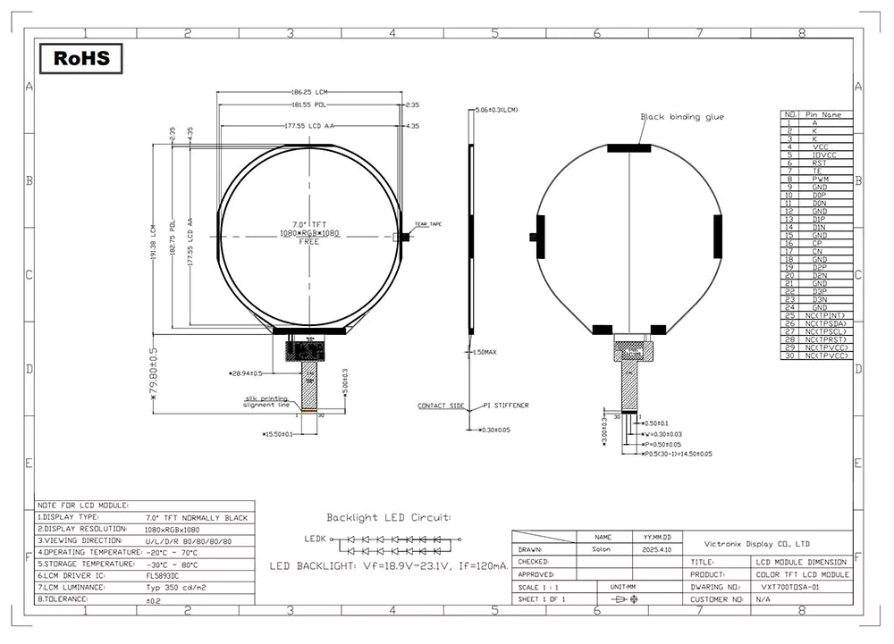 TFT modulua bizitzako nonahi aurki daiteke. Zerk egiten du Victronix 7 hazbeteko 1080 × 1080 IPS TFT LCD beste fabrikatzaile batzuengandik desberdina? Hasieran, bere 500 CD / m² Distira, 800: 1 kontraste-erlazioa eta 80 ° -ko angeluak ikusteetan, norabide guztietan, irudi biziak bermatzen dira. Bigarrenik, gailuak 4 karrean Mipi interfazea onartzen du FL5893DC kontroladorearekin abiadura handiko datuen transferentziarako. Gainera, 32 LED argiztapen zuria du, 30.000 eta 50.000 orduko bizimoduarekin, errendimendu fidagarria hainbat aplikazio industrialetan bermatuz. Gainera, ROHS arauak betetzen ditu eta fidagarritasun proba zorrotzak (shock termiko, hezetasuna, biltegia) zeharkatzen ditu, muturreko tenperaturetan (-20 ºC-tik + 70 ° C-ra) eta biltegiratze baldintza gogorrak jasaten ditu (-30 ° C eta 80 ° + 80 ° + 80 ° + 80 ° + 80 ° + 80 ° + 80 ° + 80 ° + 80 ° + 80 ° + 80 ° + 80 ° + 80 ºC).
