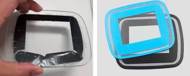 Murriztu argia / distirak: estalkiaren lentearen ertza normalean beltz edo beste mugako tinta ilunarekin (BMV) inprimatu behar da barneko kableak, osagaiak, geruza itsasgarria eta pantailaren kontraste bisuala hobetzeko. Anti-UV tinta mugako tinta honen bertsio berritzailea da.